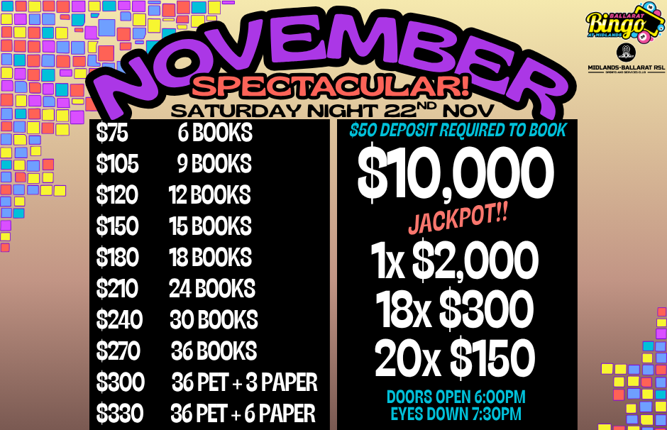 Ballarat Bingo at Midlands is located in the Fairways function room at Midlands Sports Club & RSL.